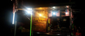 Gerai burger la, tapi entah kenapa rasa tak betul. Lampu dia kuning pucat, payung dia hitam sobek-sobek, dan penjual dia… entah, saya tak pernah lihat muka dia dengan jelas.